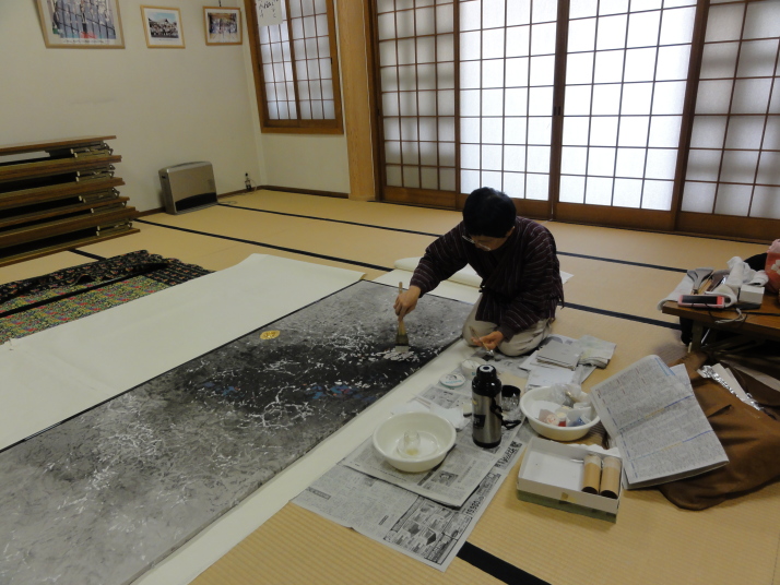 本堂での制作風景